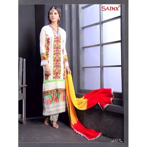 White OUTSTANDING SAJEELE BY SAINX PARTY WEAR SHALWAR KAMEEZ